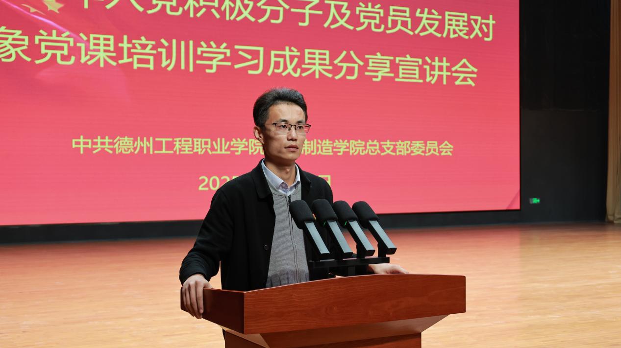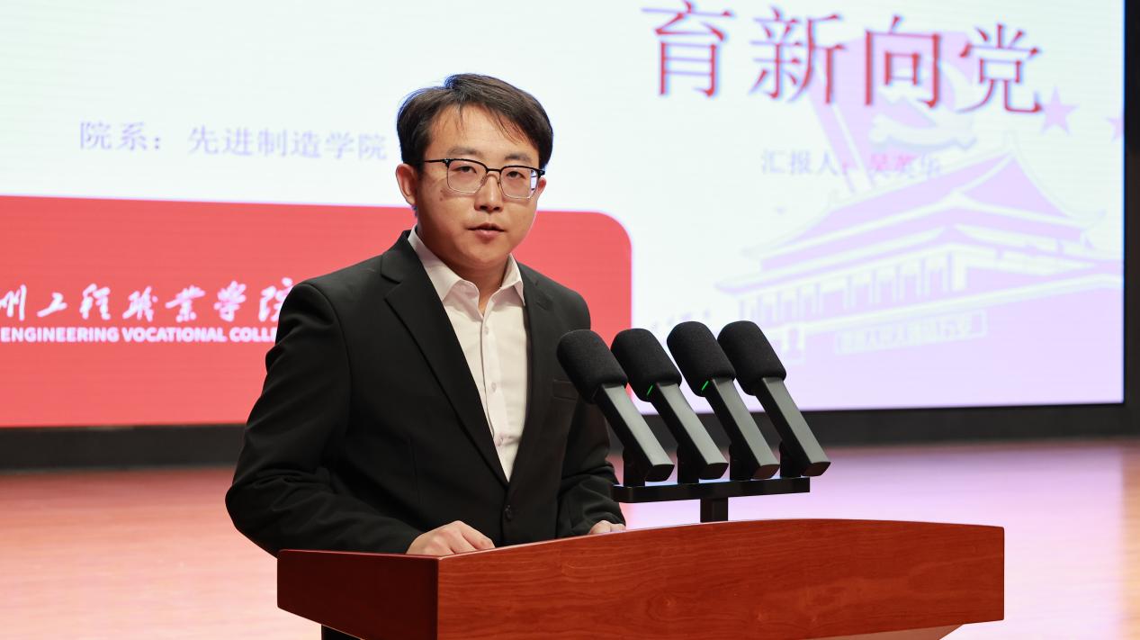 在分享环节,来自先进制造学院的教师入党积极分子代表张馨予、吴英华两位老师结合教学实践,讲述了将“为党育人、为国育才”使命融入课堂的真实感悟。学生代表卢羽航、邓鹦壤等五位同学分别从“理论学习的收获”、“实践服务的成长”等角度,分享了在党课学习、志愿服务、技能实训中的心得体会。他们用真挚的语言、生动的案例,展现了青年师生积极向党组织靠拢的决心与行动,赢得了现场阵阵掌声。