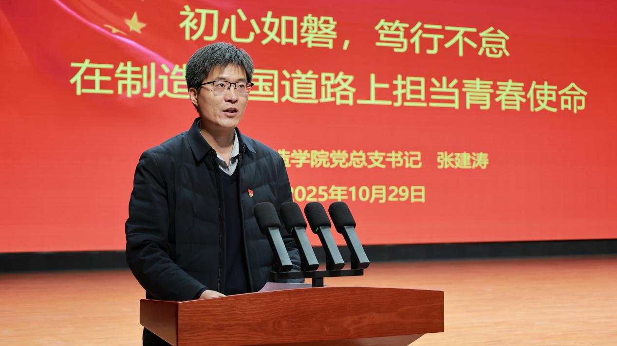 先进制造学院党总支书记、院长张建涛作会议总结。他高度评价本次分享会的意义,并强调“组织上入党一生一次,思想上入党一生一世”,希望全体同学以此次分享会为新的起点,持续加强理论武装,积极参与实践锻炼,以实际行动争取早日加入党组织。他还寄语大一新生“扣好人生第一粒扣子”,树立远大理想,夯实专业基础,争做德技并修的新时代工匠人才。