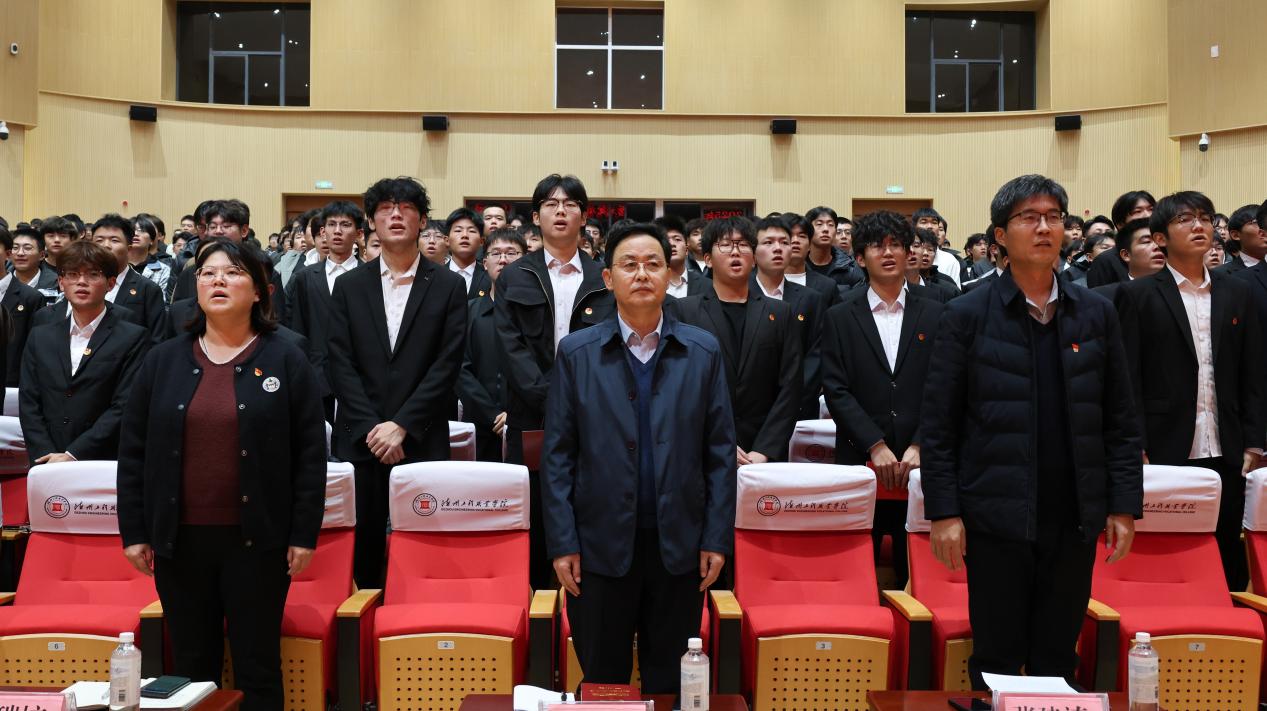 下午4时30分,分享会在庄严的国歌声中拉开帷幕。全体师生肃立齐唱,歌声激昂,展现了青年学子昂扬向上的精神风貌和坚定跟党走的理想信念。