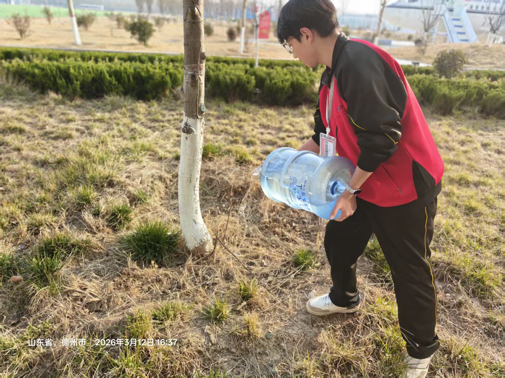 “每一棵小树都是校园的守护者,能为它们浇水,看着它们慢慢长大,我觉得特别有意义。”浇水过程中,同学们不仅体验到劳动的乐趣,更深刻理解了植树节的内涵——植绿护绿从不是口号,而是每一次浇灌的温柔、每一份付出的坚守,是对生命的馈赠,更是对校园的深情守护。