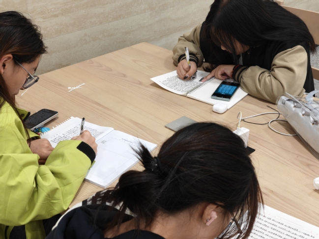 活动现场洋溢着浓厚的书香氛围。读书区内,同学们或潜心研读专业书籍,在知识海洋中探索求真;或细品文学经典,于字里行间感悟人生。练字区里,同学们执笔挥毫,或临摹传统名篇,或书写自选佳句,在横竖撇捺间体会汉字之美。两个区域相映成趣,构成了一幅生动的校园文化图景。
