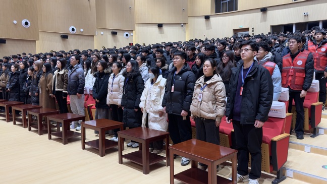 上午8时15分,升旗仪式在肃穆的氛围中正式开始。在主持人石博老师沉稳从容的主持下,全体师生整齐肃立。伴随着激昂的《义勇军进行曲》奏响,师生们齐声高唱国歌,肃穆的仪式感与真挚的爱国情怀在报告厅内回荡交融。