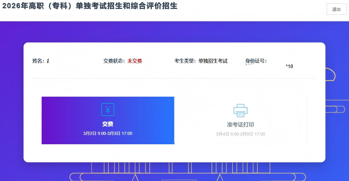 3.请再次核实考生姓名、考生类型、身份证号,确认无误后进行缴费。