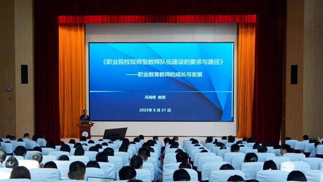 冯海明教授以《职业院校“双师型”教师队伍建设的内涵与路径》为题展开授课。结合《职业教育法》、《教育强国建设规划纲要(2024-2035 年)》,解析双师型教师“师德高尚、技艺精湛、素质优良、结构合理”的核心标准,提出“八个一”能力提升清单,通过北京工业职业技术学院国家级教学创新团队建设案例,详解如何通过校企合作、技术服务、教学团队协作实现教师能力突破。