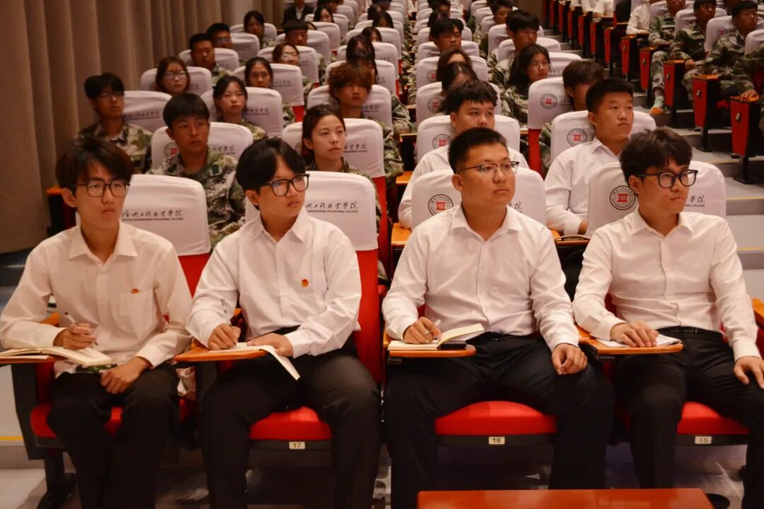 9月22日,德州工程职业学院复兴大厦报告厅内,一场关于历史、现在与未来的对话深深叩击着每一位学子的心扉。校长魏荣庆以“传承红色基因、担当强国使命”为题,为全体学生讲授了一堂激情澎湃的“开学第一课”。这堂课,既是2025级新生的“大学启航仪式”,更是一堂面向全体学生的“思想政治金课”。他从弘扬抗战精神、技能报国以及“以学生为中心”等三个方面进行阐述,为新学期拉开了理想信念教育的序幕。