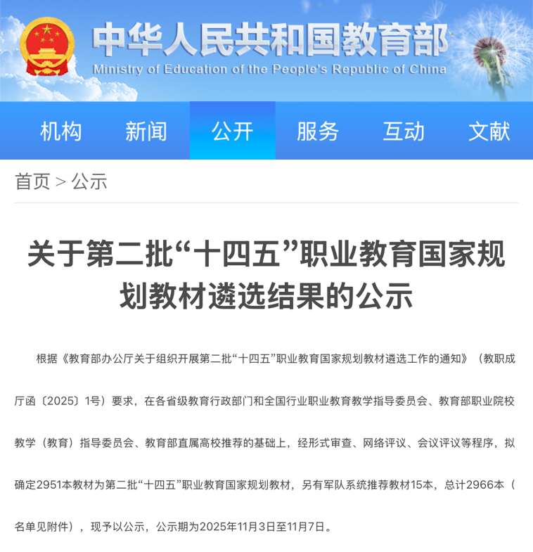 此次教材入选,是学校深化产教融合、推进教材改革创新的又一成果印证。学校将持续聚焦职业教育高质量发展,加大优质教学资源建设与开发力度,深化教育教学改革,为培养更多高素质技术技能人才筑牢教学根基。