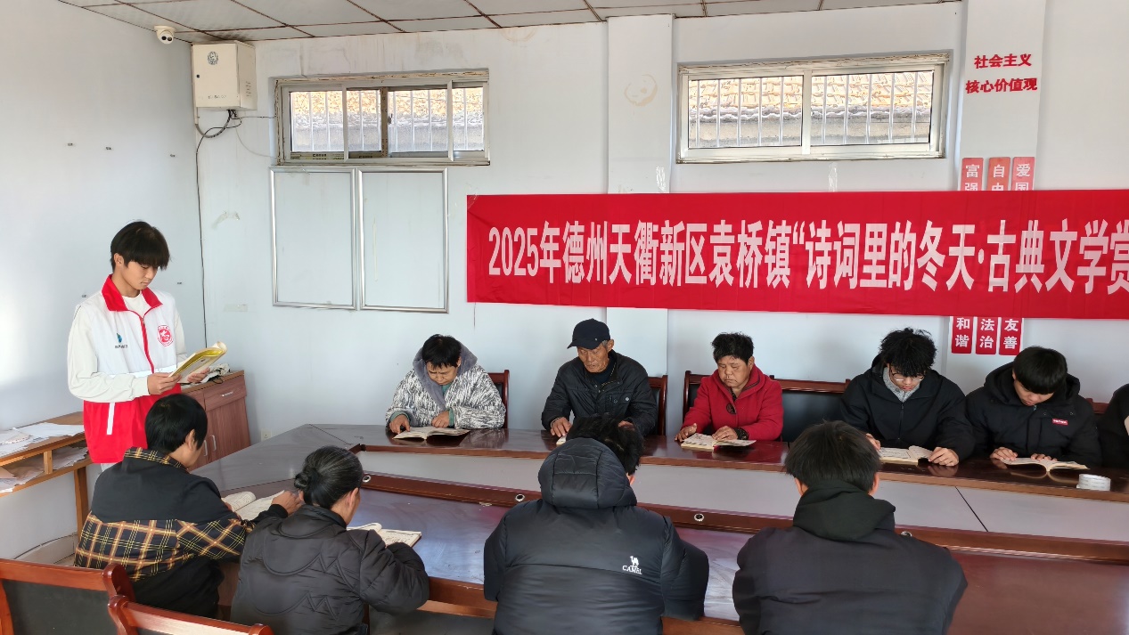 为进一步推动全民阅读走进社区,让中华古典文学滋养居民精神生活,搭建邻里文化交流平台,11月18日,德工院智慧交通学院在德州天衢新区袁桥镇社区举办“诗词里的冬天”古典文学赏析全民阅读志愿服务活动。活动由德工院智慧交通学院青年志愿者担任阅读引领者,社区居民参与,在朗朗诗声中解锁冬日的文学意蕴,感受传统文脉的独特魅力。